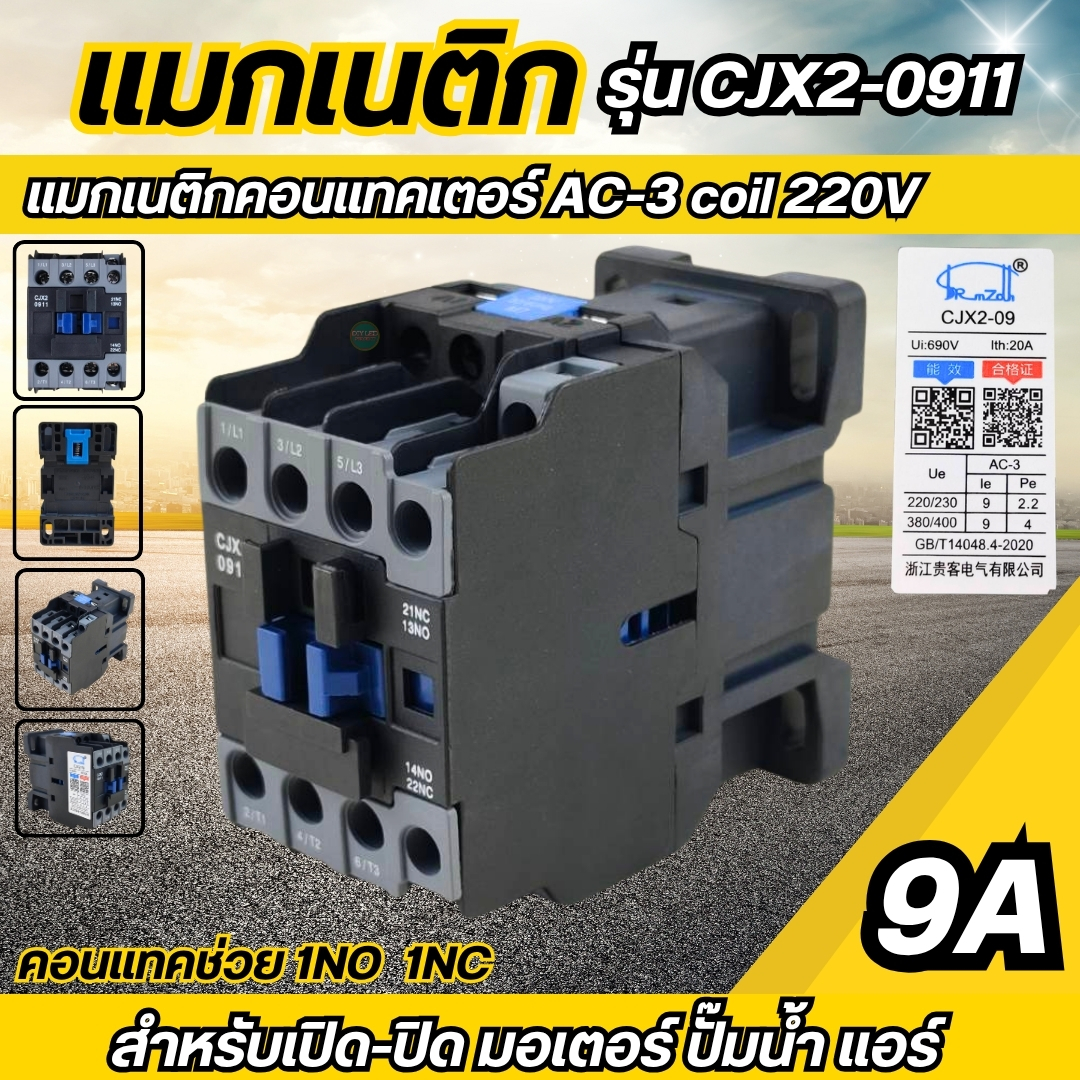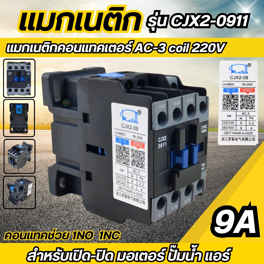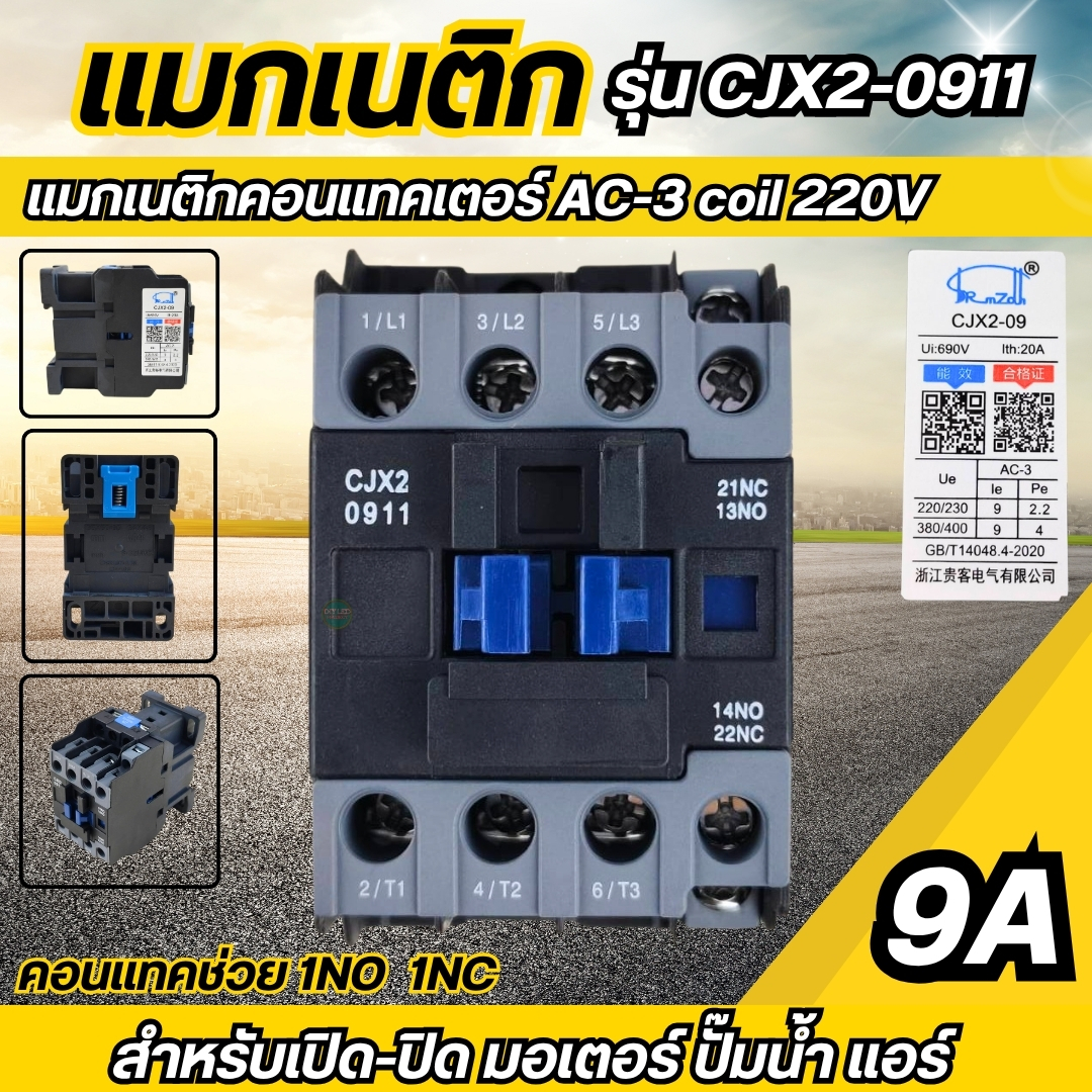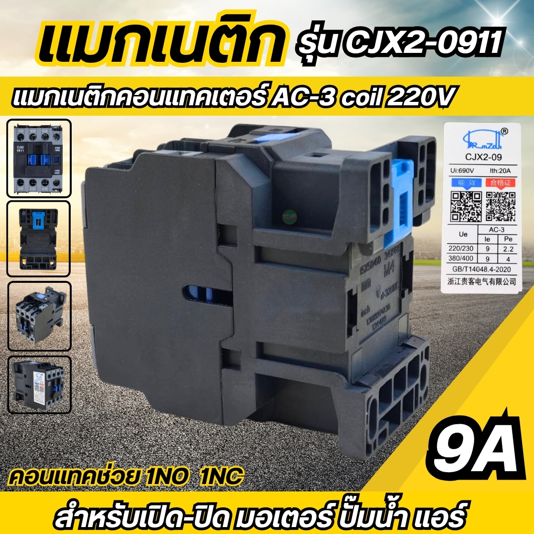 -17% แมกเนติกคอนแทคเตอร์ 9A รุ่น CJX2-0911 Coil 220V AC-3 คอนแทคช่วย 1NO 1NC
