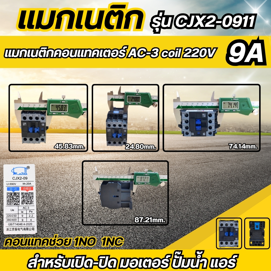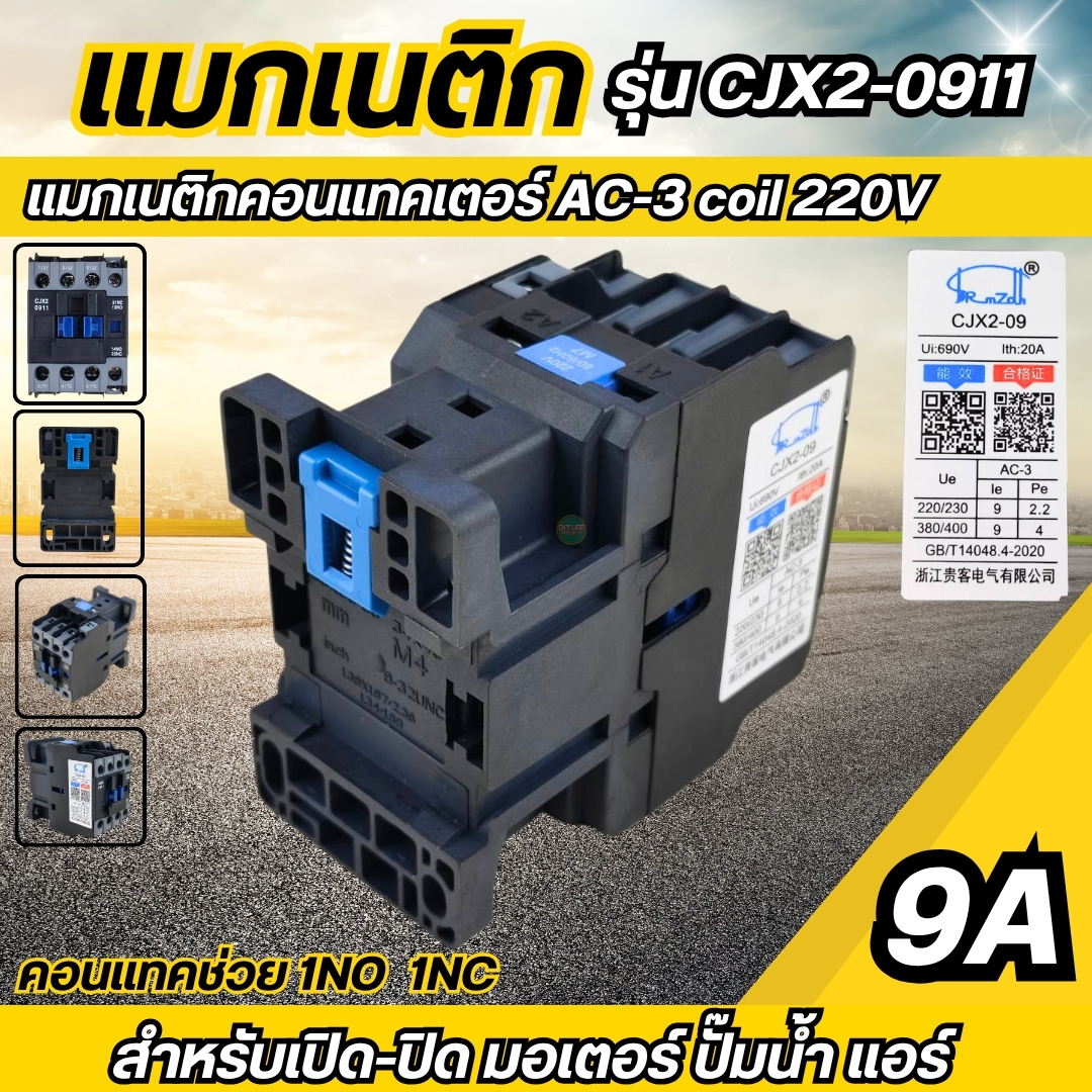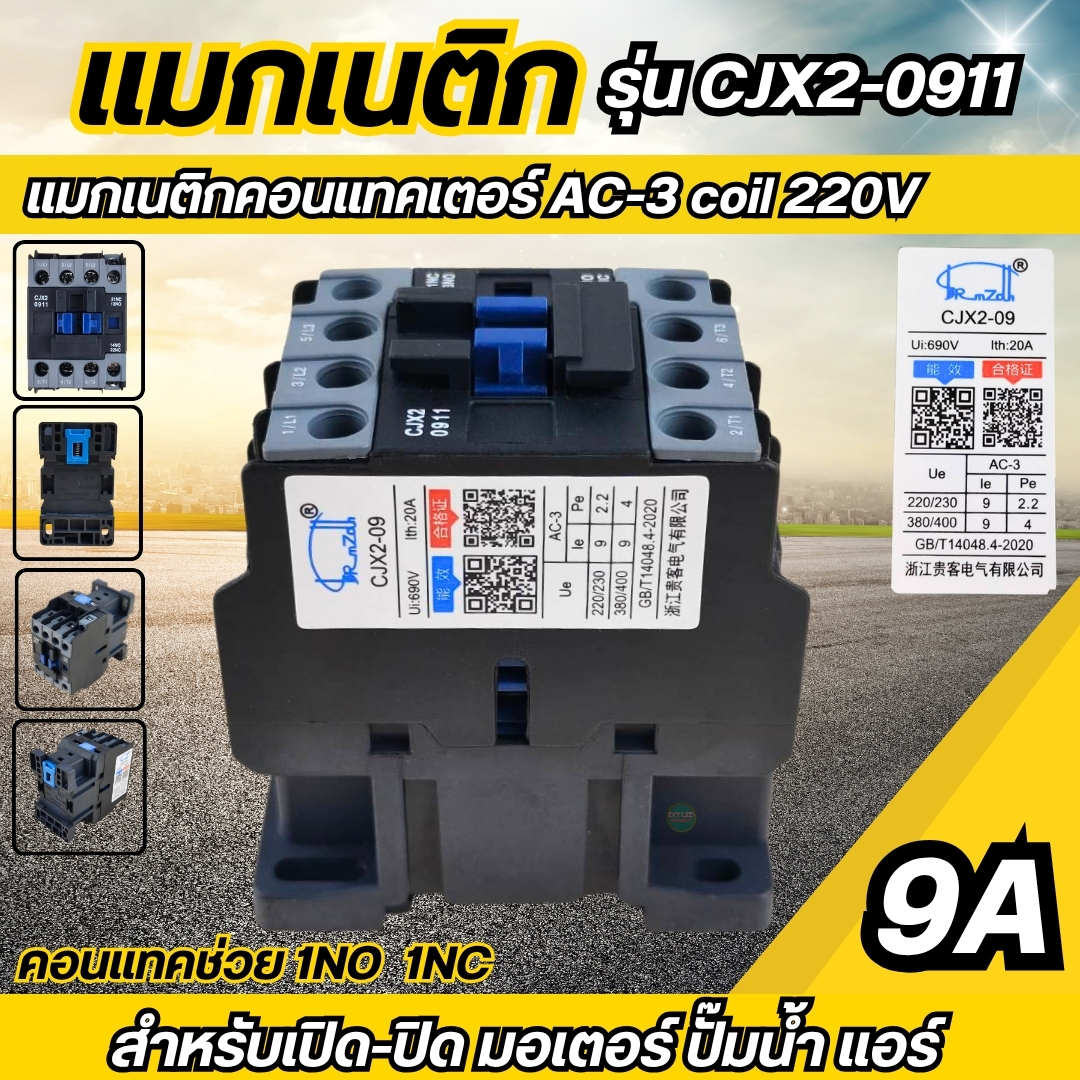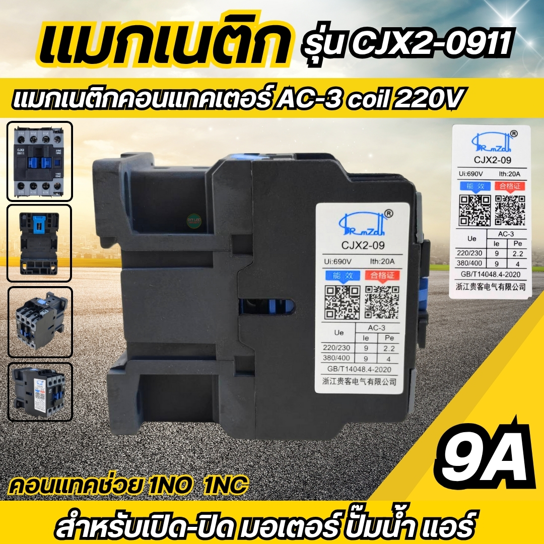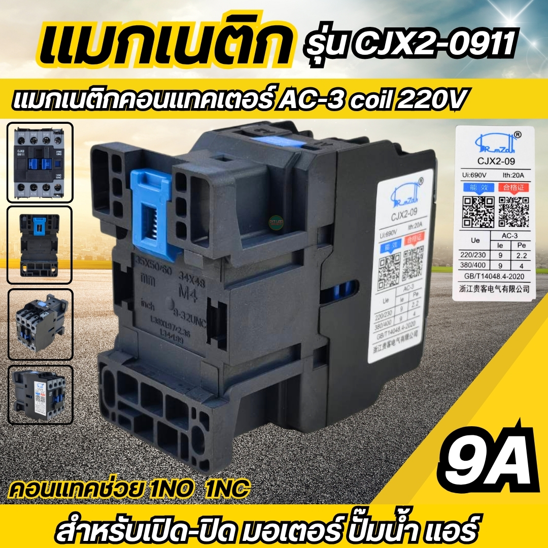 -17% แมกเนติกคอนแทคเตอร์ 9A รุ่น CJX2-0911 Coil 220V AC-3 คอนแทคช่วย 1NO 1NC